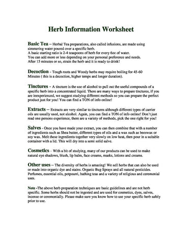 As shown in our pictures, you can also download our really cool Herb Preparation Worksheet, for Free, Just for visiting our page!